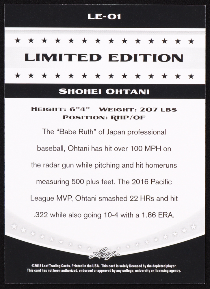 Shohei Ohtani 2018 Leaf Ohtani Limited Edition #LE01 RC