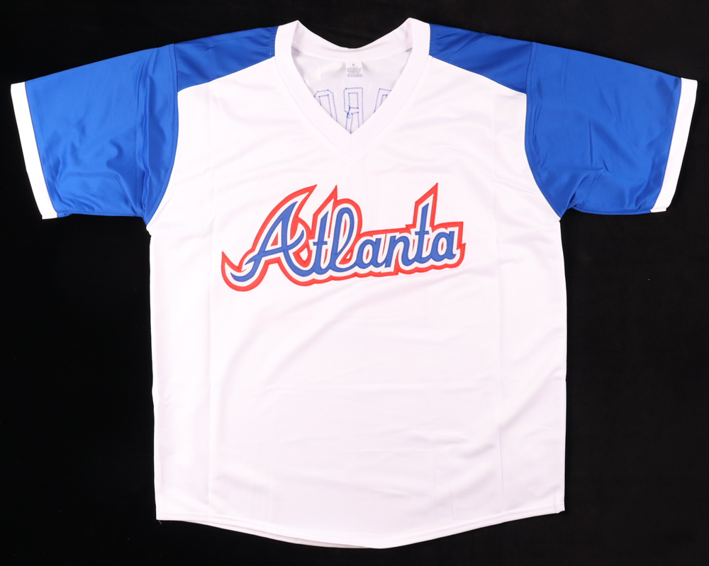 Custom style jersey with everything sewn on, size XL. Hand-signed by Hank Aaron (D. 2021, HOF).