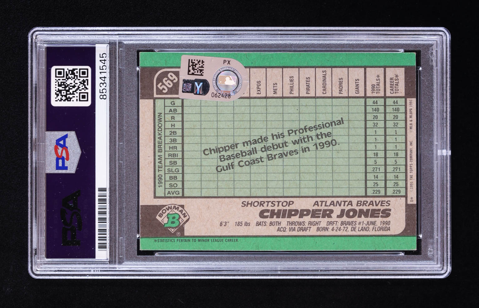 Chipper Jones Signed 1991 Bowman #569 RC (PSA | Autograph Graded PSA 10)