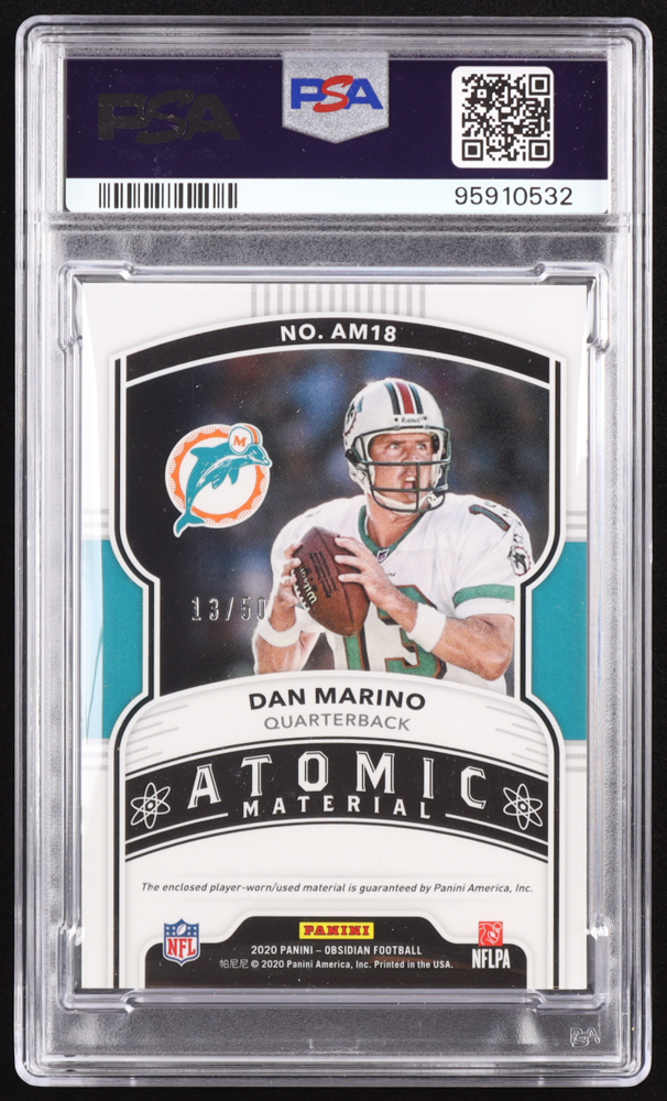 Dan Marino 2020 Panini Obsidian Atomic Material #18 #13/50 (PSA 9)