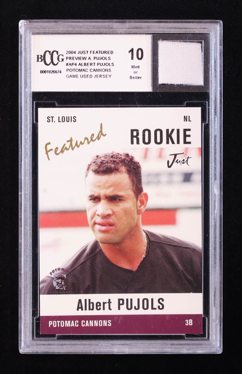 Albert Pujols 2004 Just Featured Preview Pujols #AP4 RC / Peoria with Game-Used Jersey Piece (BCCG 10)