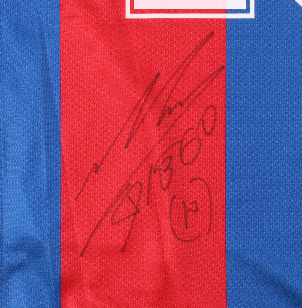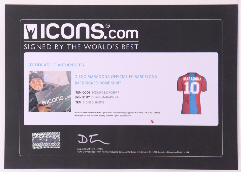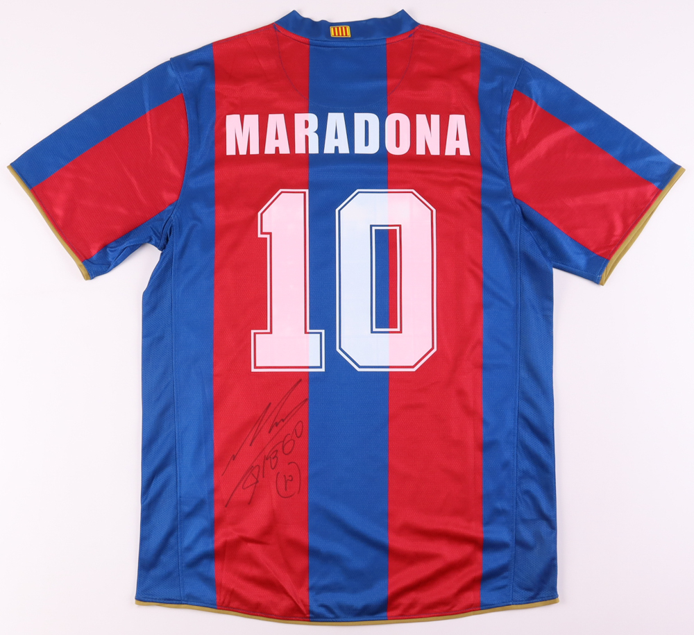 Nike style jersey with everything sewn/printed on, size L, has been hand-signed by soccer legend, Diego Maradona!