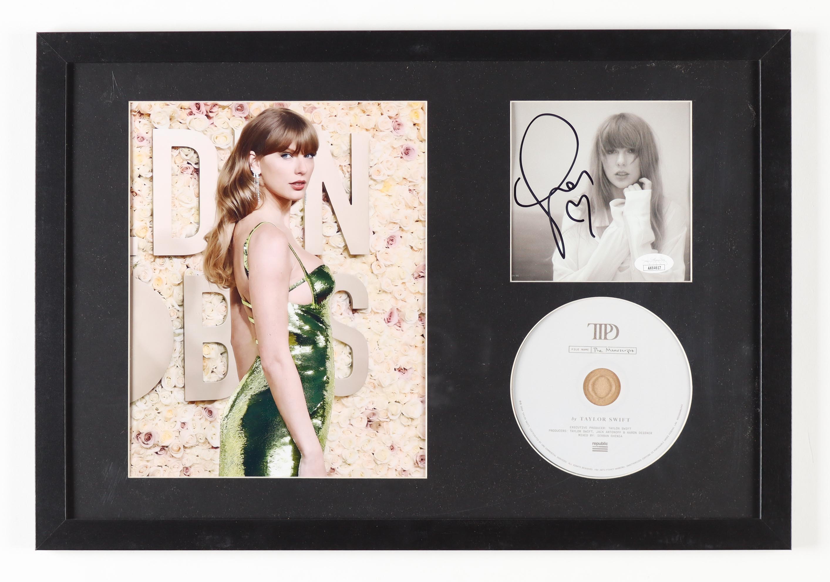 Custom frame measures approximately 13" x 19" in size. Features a "The Torture Poets Department" CD insert that has been hand-signed by Taylor Swift. The display also includes the disc as shown.