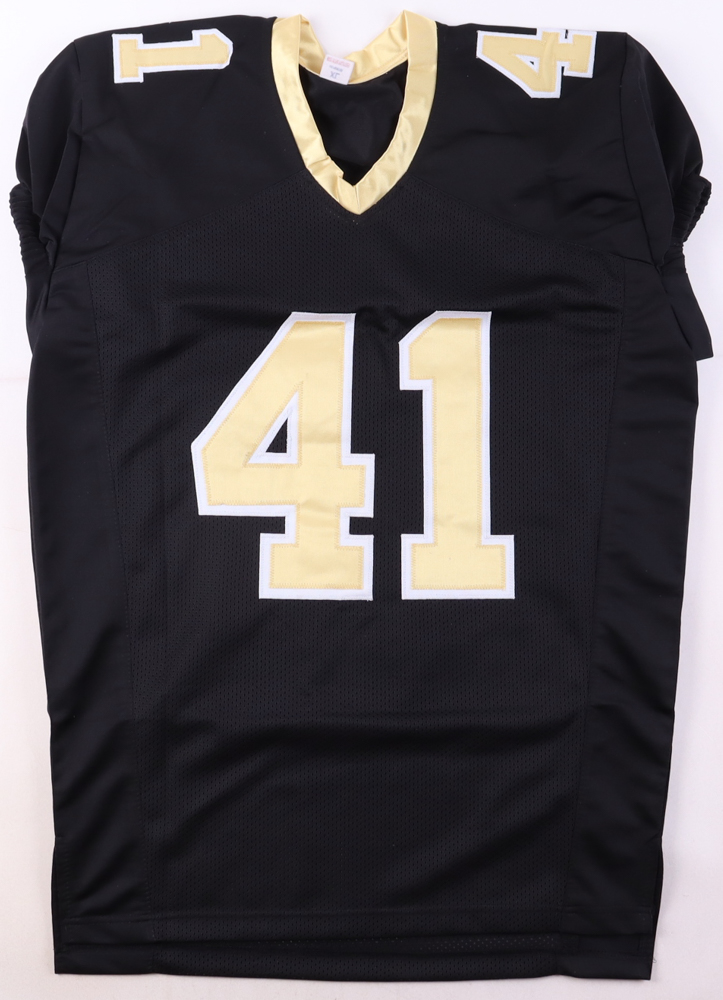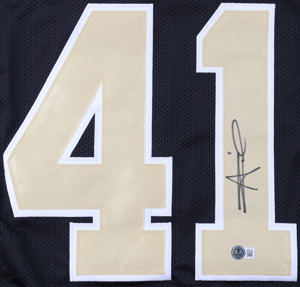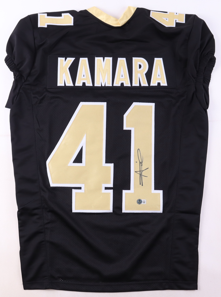 Custom jersey with everything sewn on, size XL. Hand-signed by Alvin Kamara.