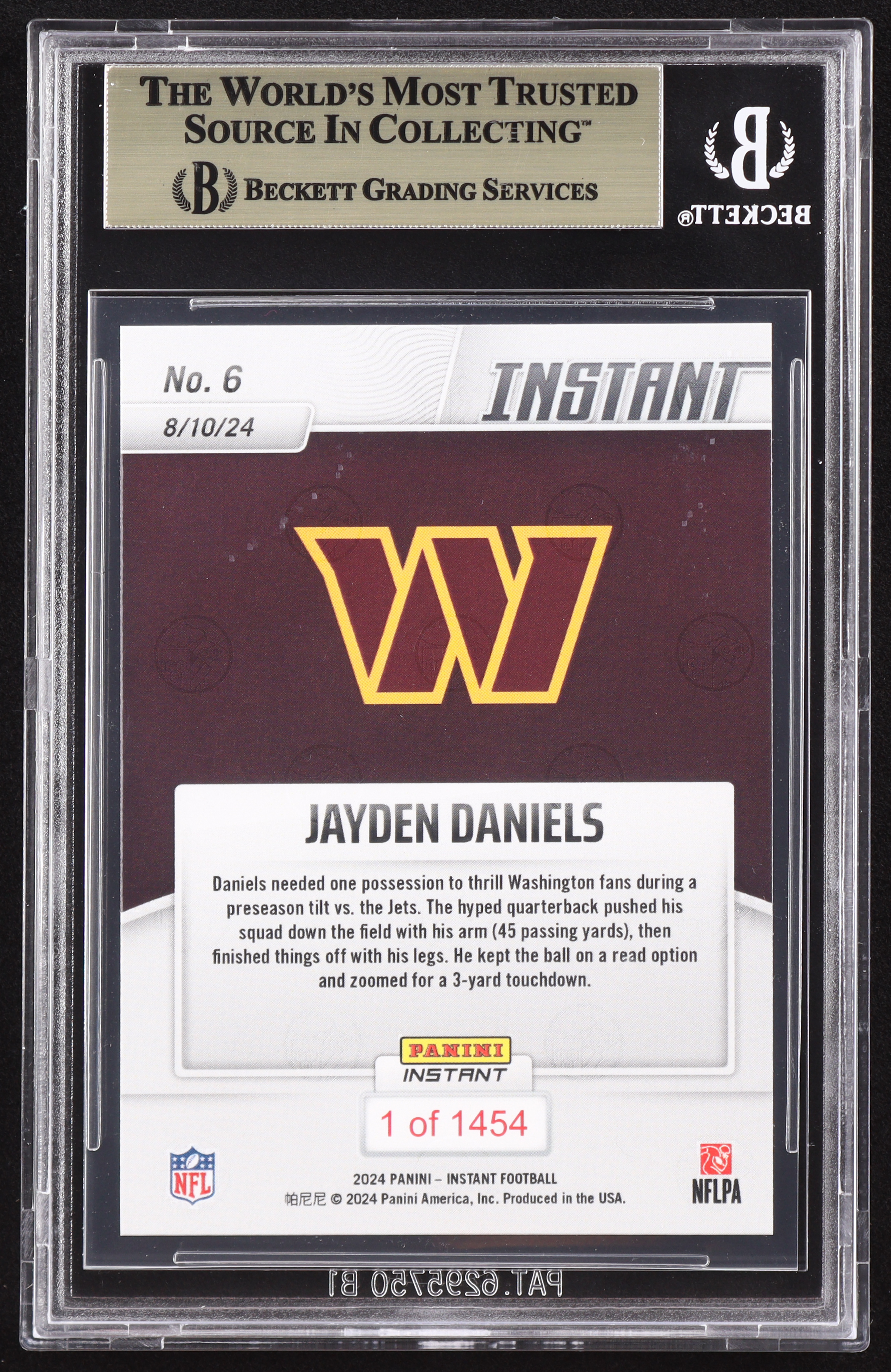 Card has been graded Beckett (BGS) 10. Please see photos for details regarding the condition of the card (Washington Commanders).