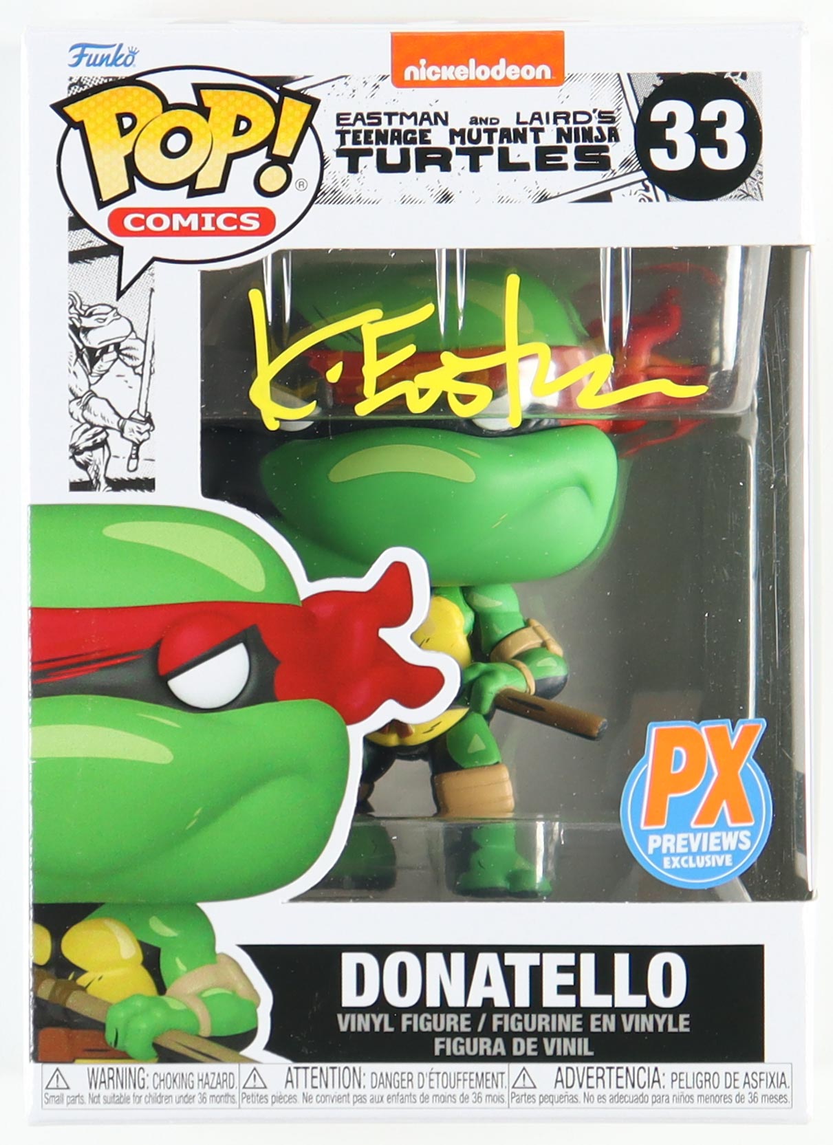 Funko Pop! figure measures approximately 4" tall and has been hand-signed on the packaging by Kevin Eastman.