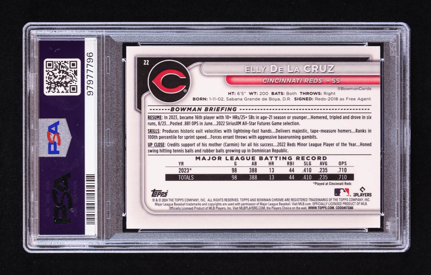 Card has been graded PSA 10. Please see photos for more details regarding the condition of the card (Cincinnati Reds).