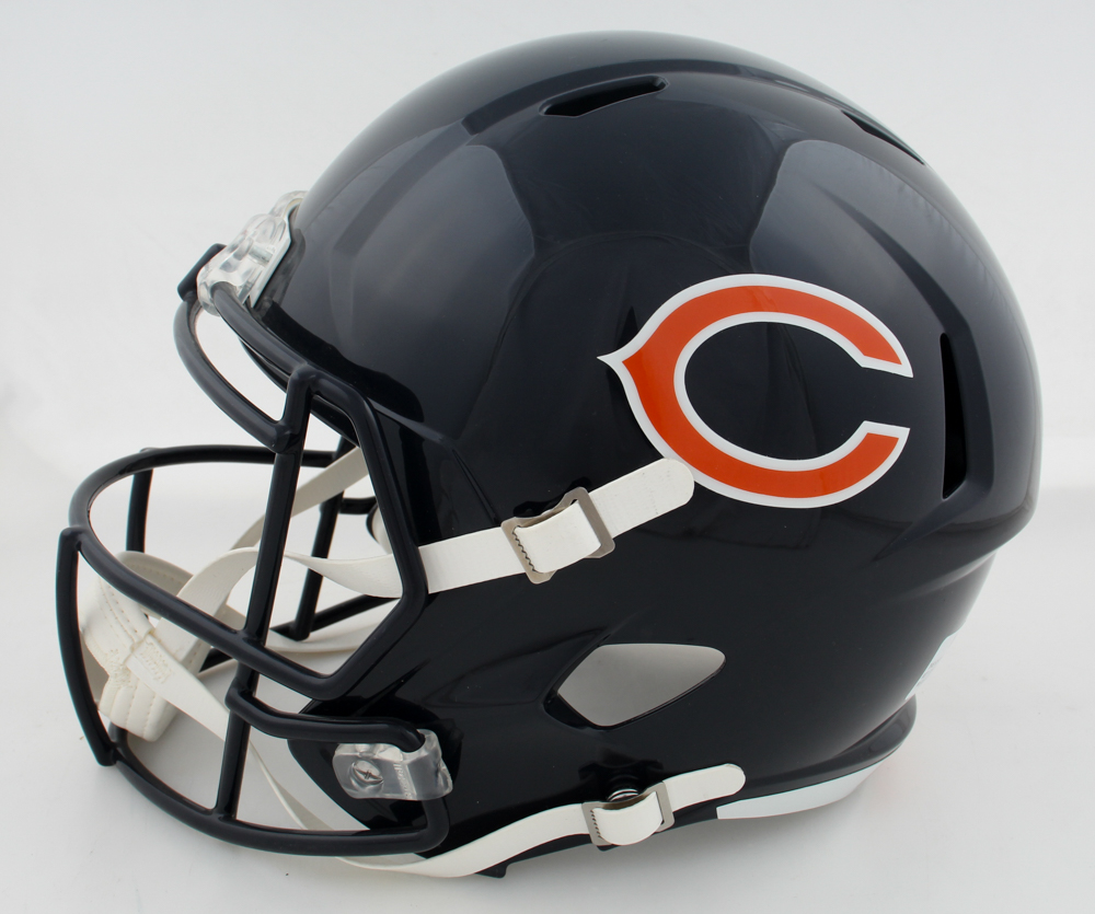 Riddell Chicago Bears full-size speed replica helmet has been hand-signed by Mitchell Trubisky.