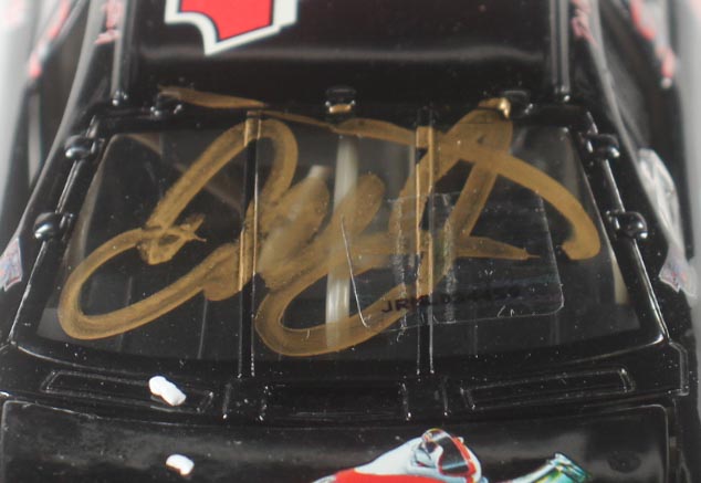 Premium die-cast car hand-signed on the windshield by Dale Earnhardt Jr. Please see photos for more details on the condition of the item. Please note, the signature is imperfect.