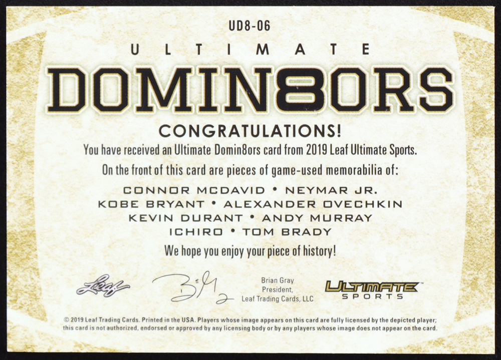 2019 Leaf Ultimate Sports Ultimate Domin8ors Spectrum Platinum #UD8-06 #1/5 Connor McDavid / Kobe Bryant / Kevin Durant / Ichiro / Neymar Jr. / Alexander Ovechkin / Andy Murray / Tom Brady