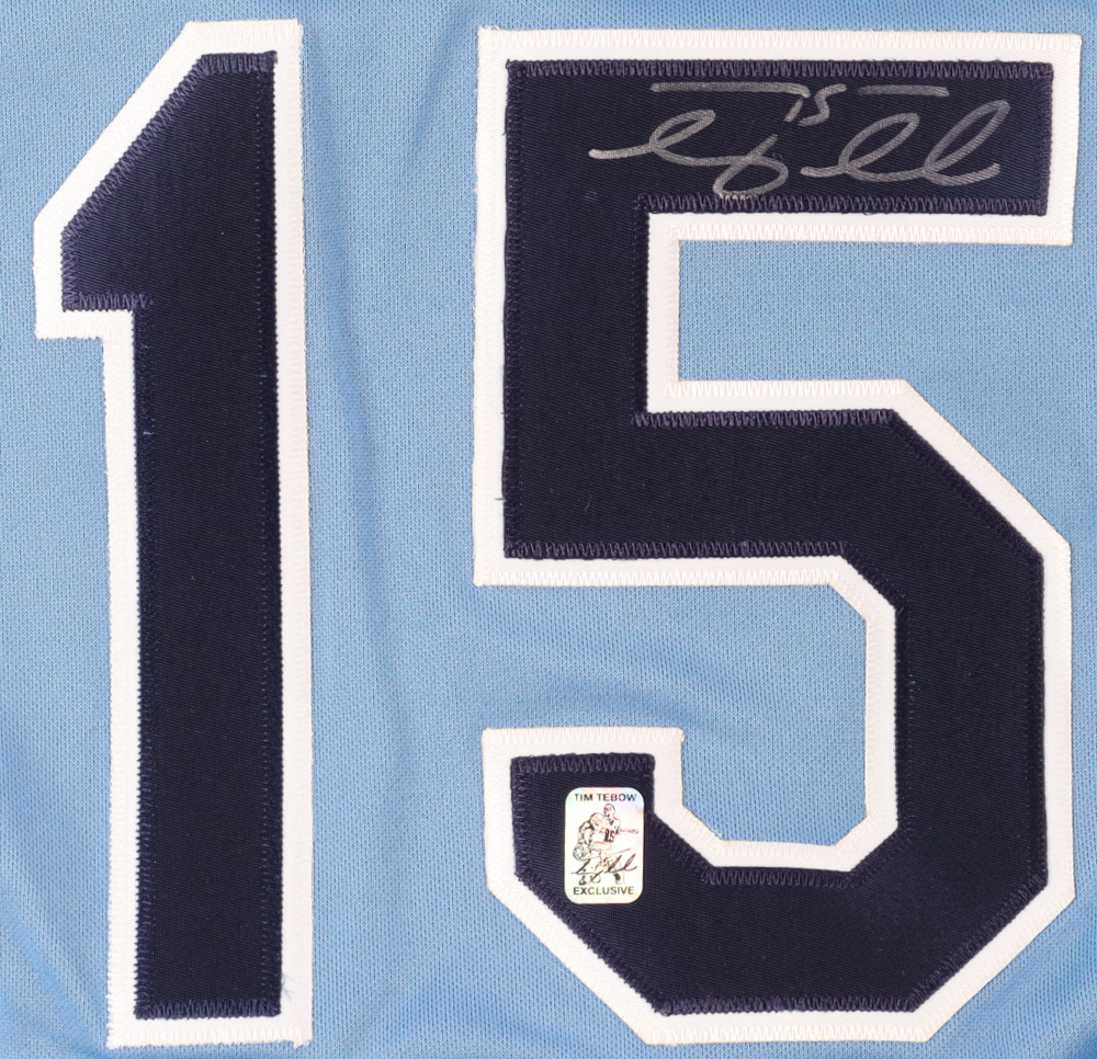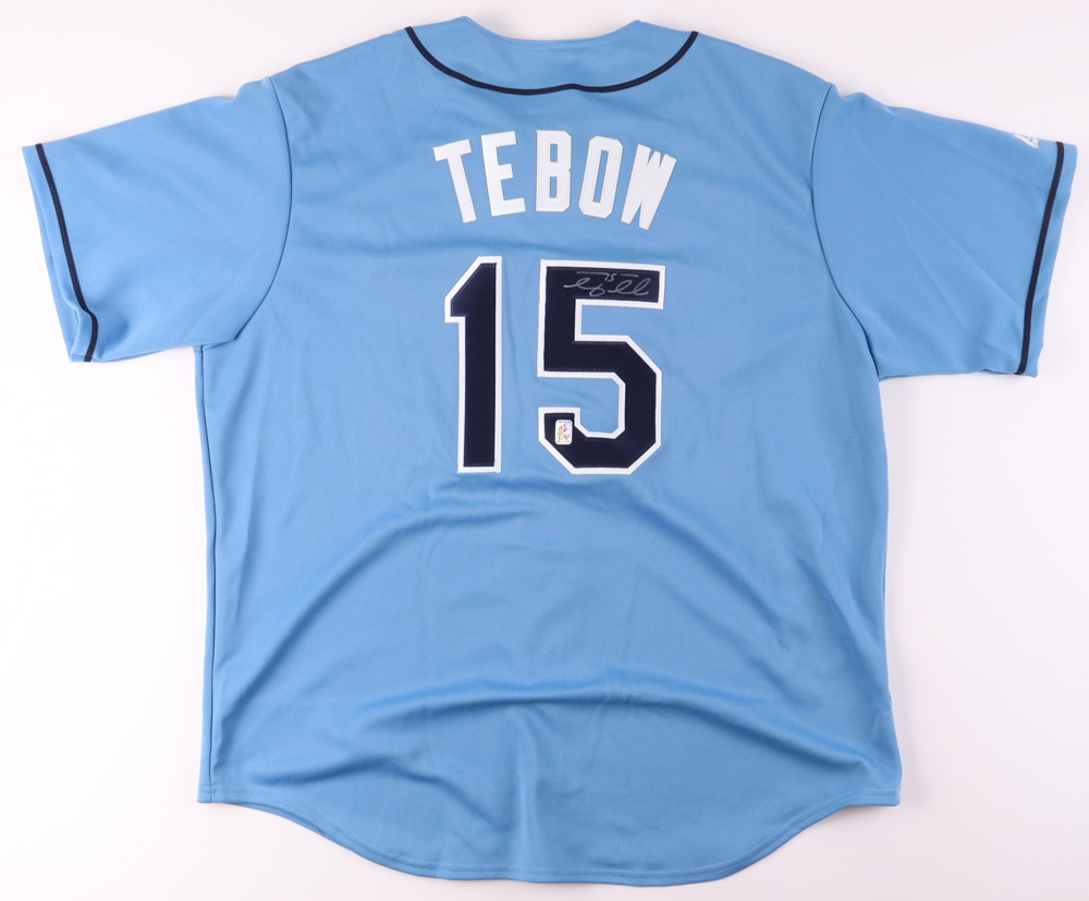 Majestic jersey. Everything is sewn on, size XL. Hand-signed by Tim Tebow (Tampa Bay Rays).