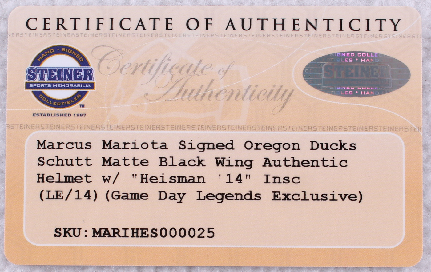 Marcus Mariota Signed LE Oregon Full-Size Authentic Pro-Line Custom Matte Black & Chrome Wings Helmet Inscribed "Heisman '14" (Steiner COA)