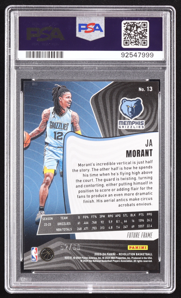 Ja Morant 2023-24 Panini Revolution Future Frame #13 #52/60 (PSA 9)