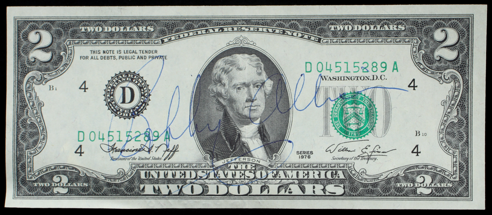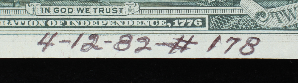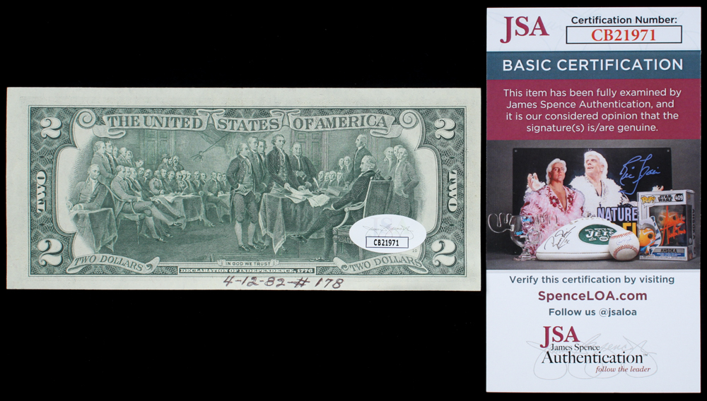 Bobby Allen Signed 1976 $2 Two Dollar Federal Reserve Note Inscribed "4-12-82 #178" (JSA)