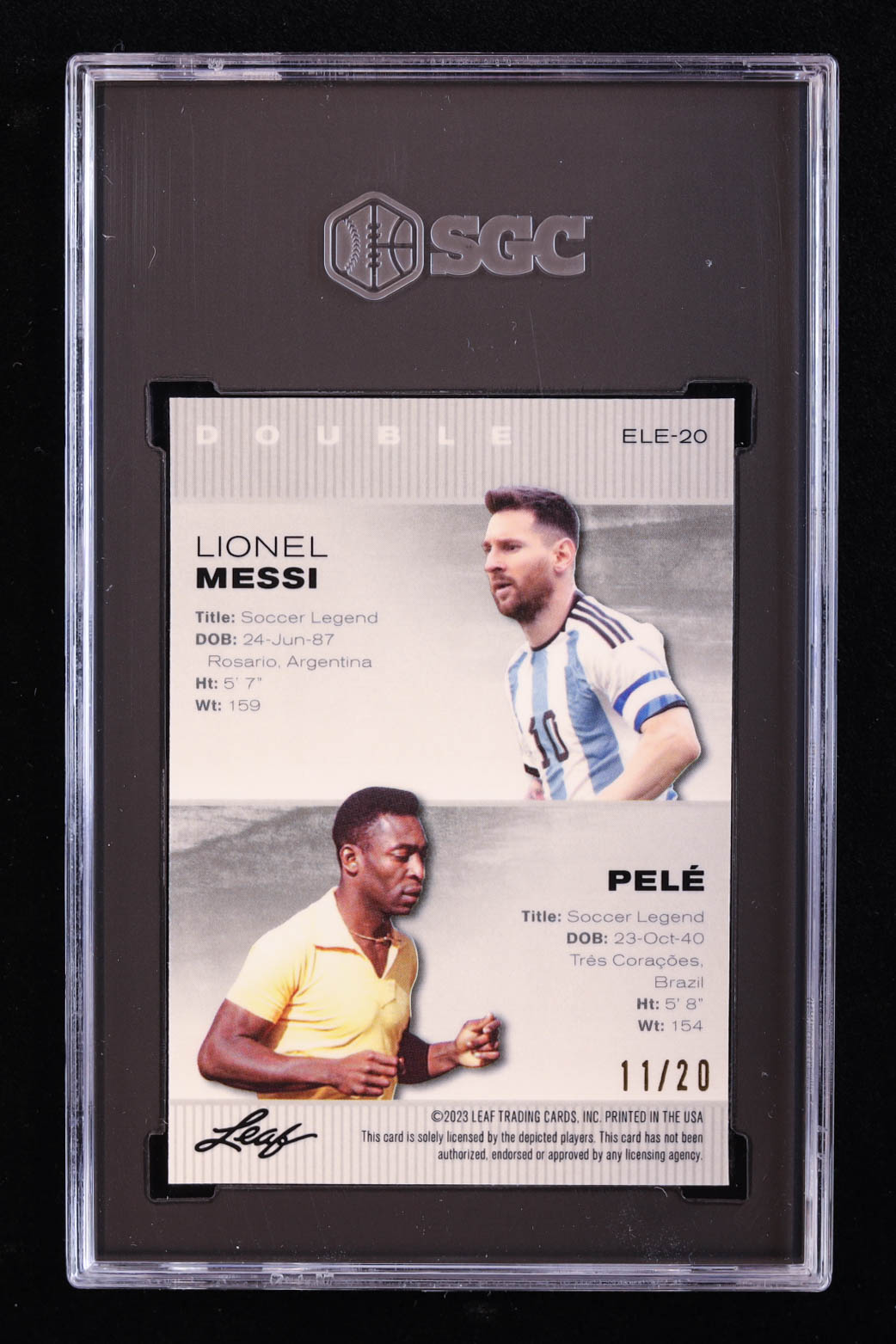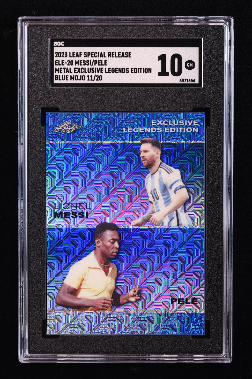 Lionel Messi / Pele 2023 Leaf Metal Special Release Exclusive Legends Edition Mojo Blue #ELE20 #11/20 (SGC 10)