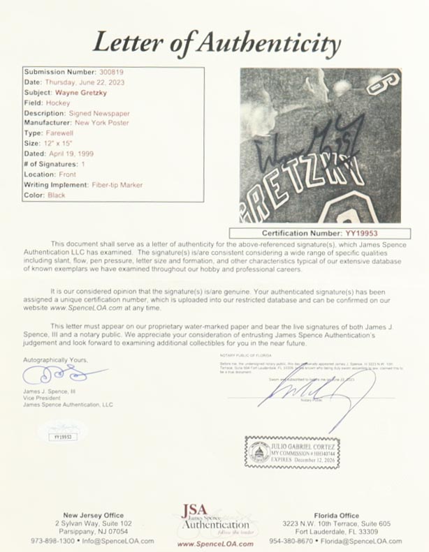 The autograph(s) includes an official James Spence Authentication (JSA) hologram and matching LOA for authenticity purposes.