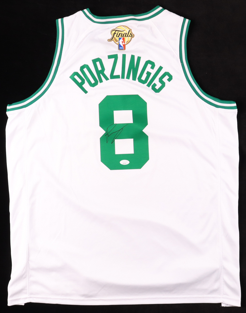 Nike jersey. Everything is pressed on, size 52. Jersey is hand-signed by Kristaps Porzingis.