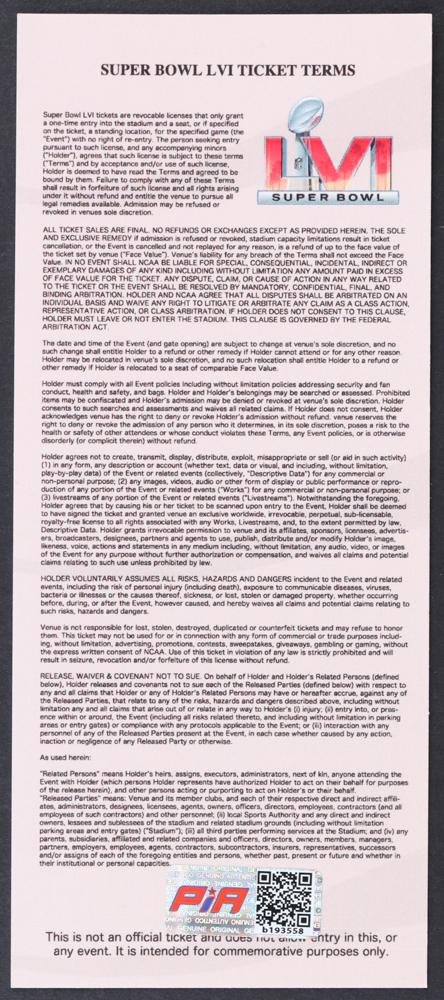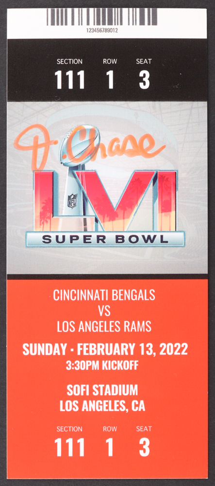 Ja'Marr Chase Signed Super Bowl LVI Commemorative Game Ticket (PIA)