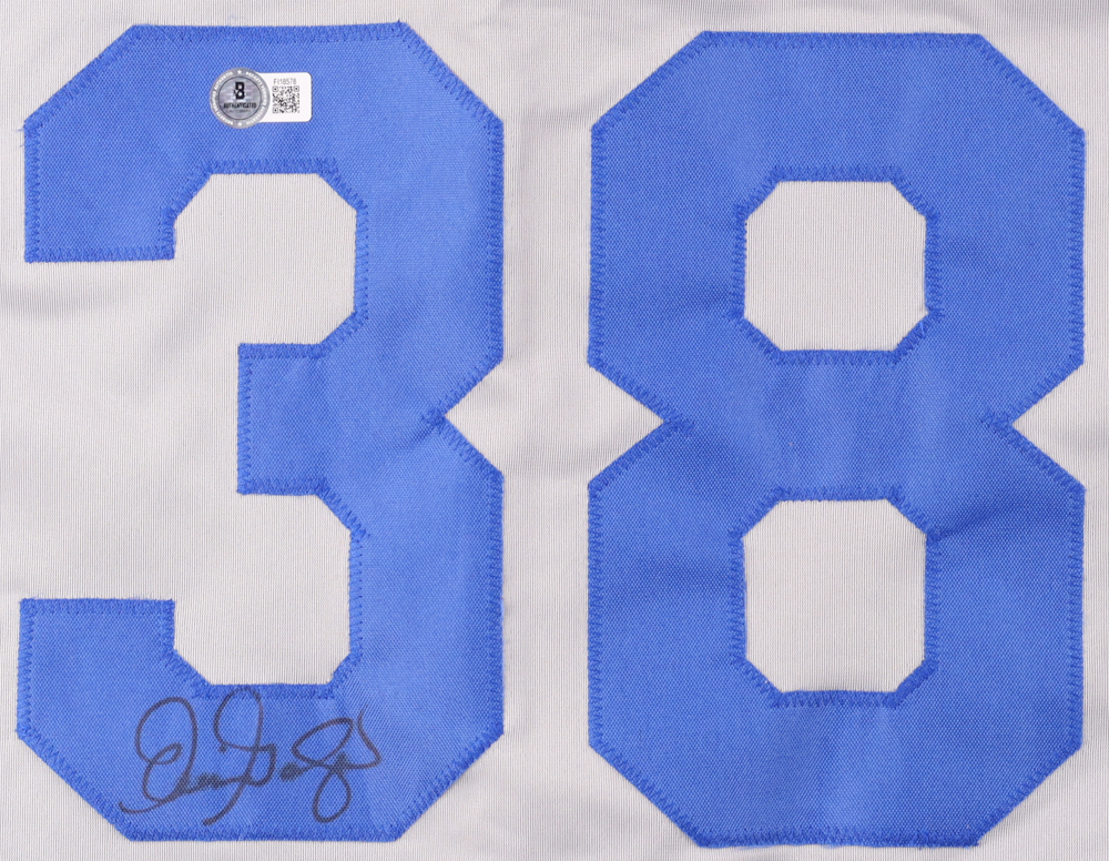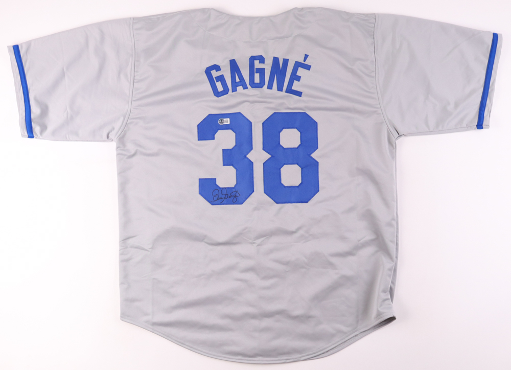 Custom jersey with everything sewn on, size XL. Has been hand-signed by Eric Gagne.