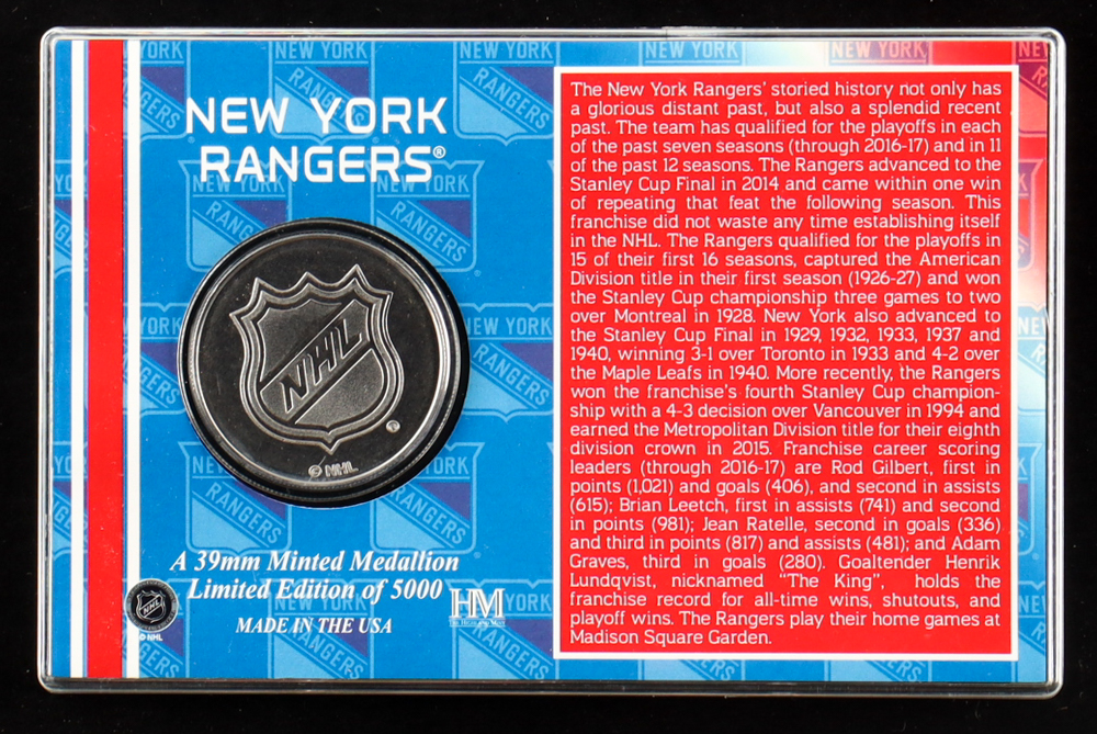 Rangers 4x Stanley Cup Champions Highland Mint Medallion Display