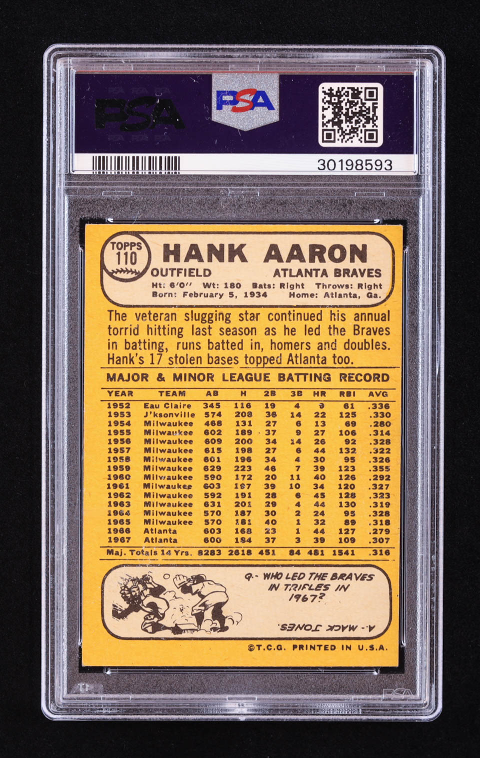 Hank Aaron 1968 Topps #110 (PSA 6)