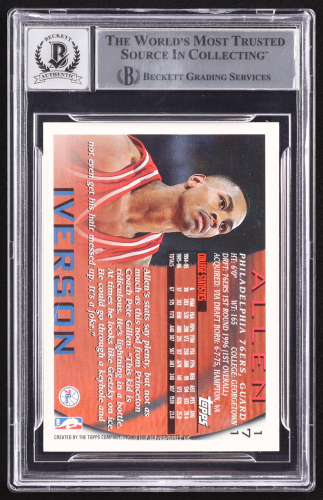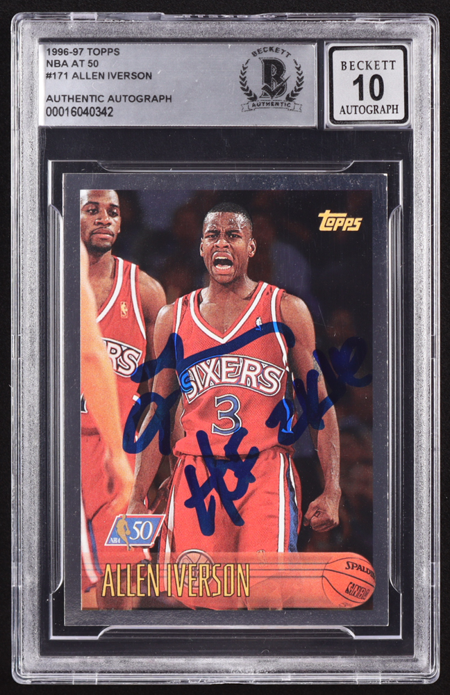 Allen Iverson Signed 1996-97 Topps NBA at 50 #171 RC Inscribed "HOF 2K16" (BGS | Auto 10)