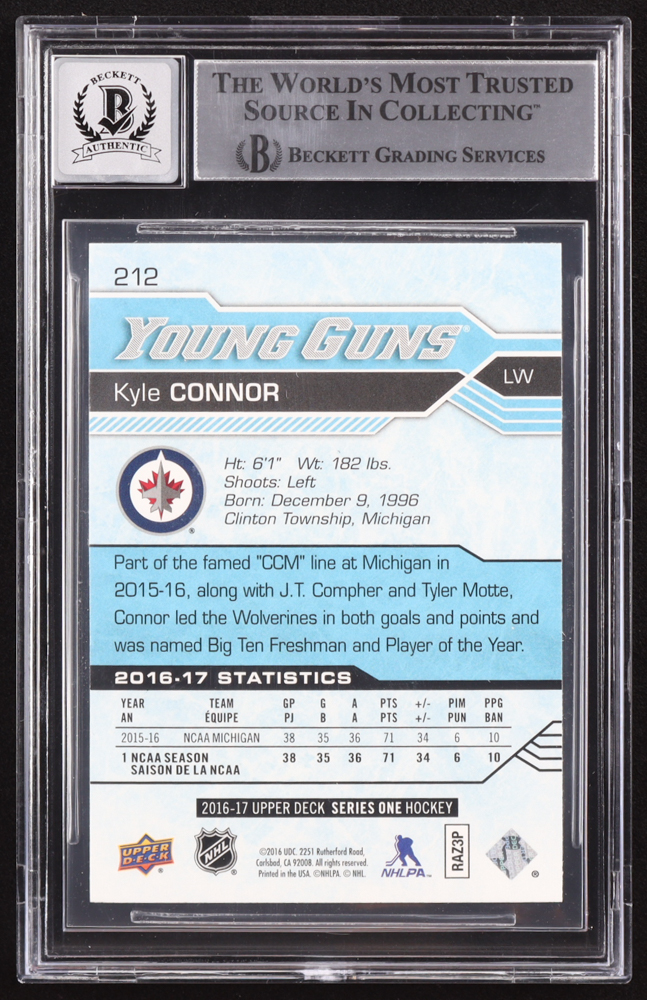 Kyle Connor Signed 2016-17 Upper Deck #212 YG RC (BGS | Auto 10)
