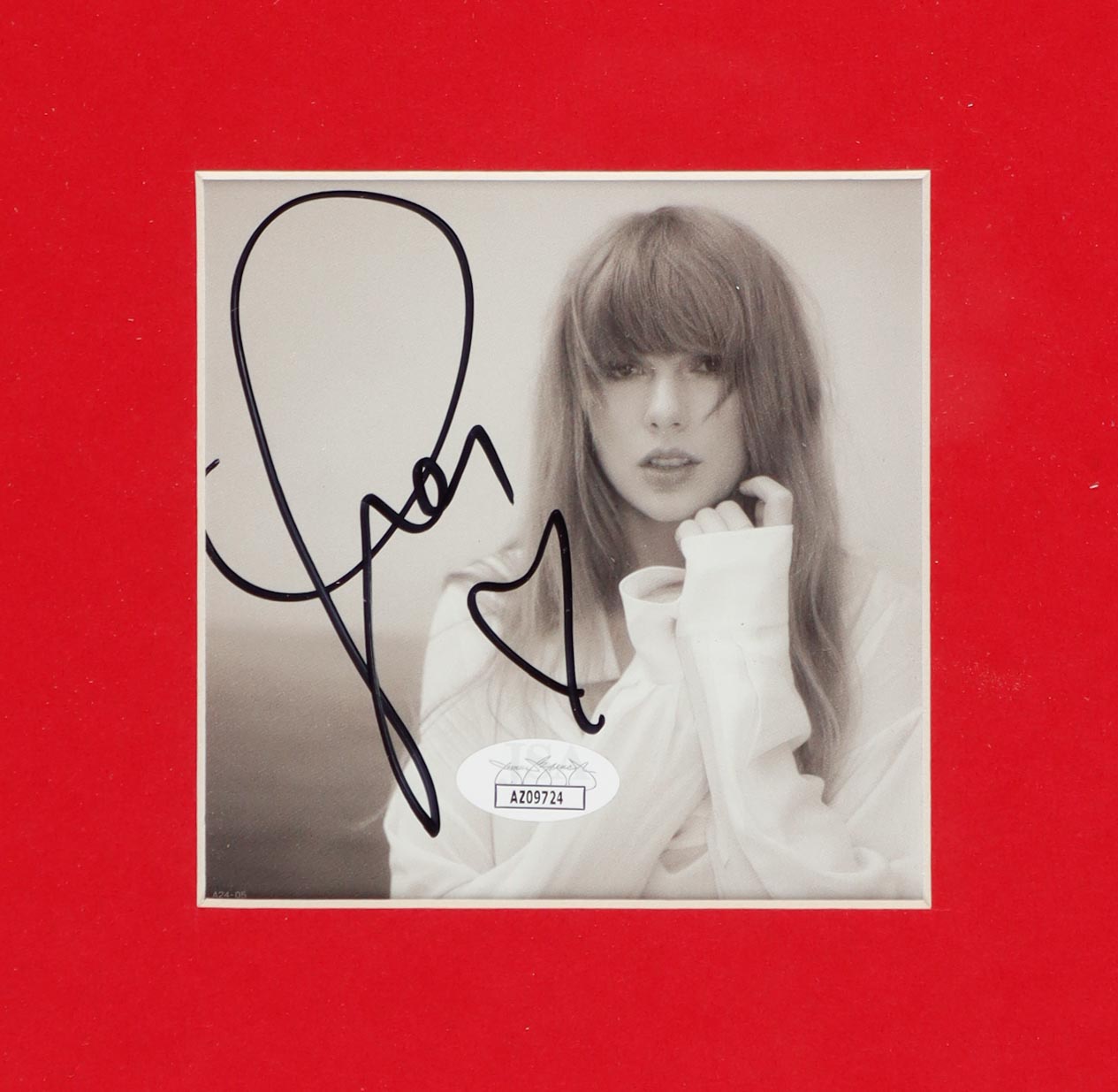 Custom frame measures approximately 35.5" x 43.5" in size. Features a "The Torture Poets Department" CD insert that has been hand-signed by Taylor Swift. The display also includes a custom jersey.