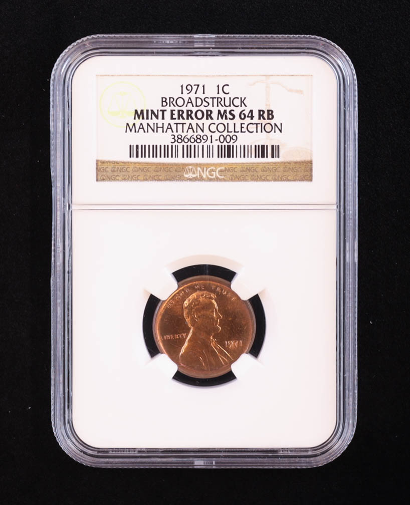 1971 Lincoln Memorial Cent - Mint Error: Broadstruck - Manhattan Collection (NGC MS64 RB)