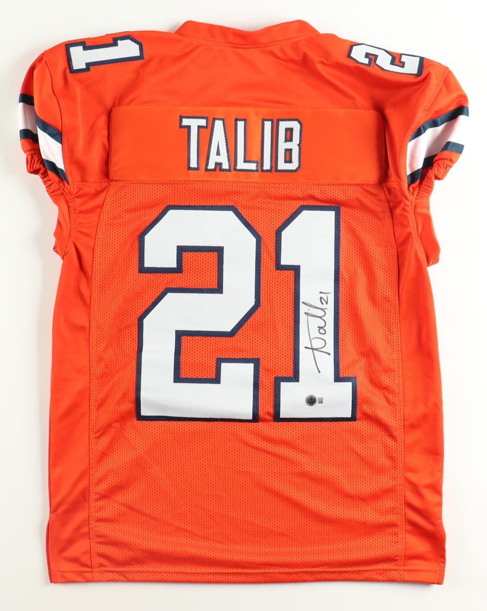 Custom jersey with everything sewn on, size XL. Hand-signed by Aqib Talib.