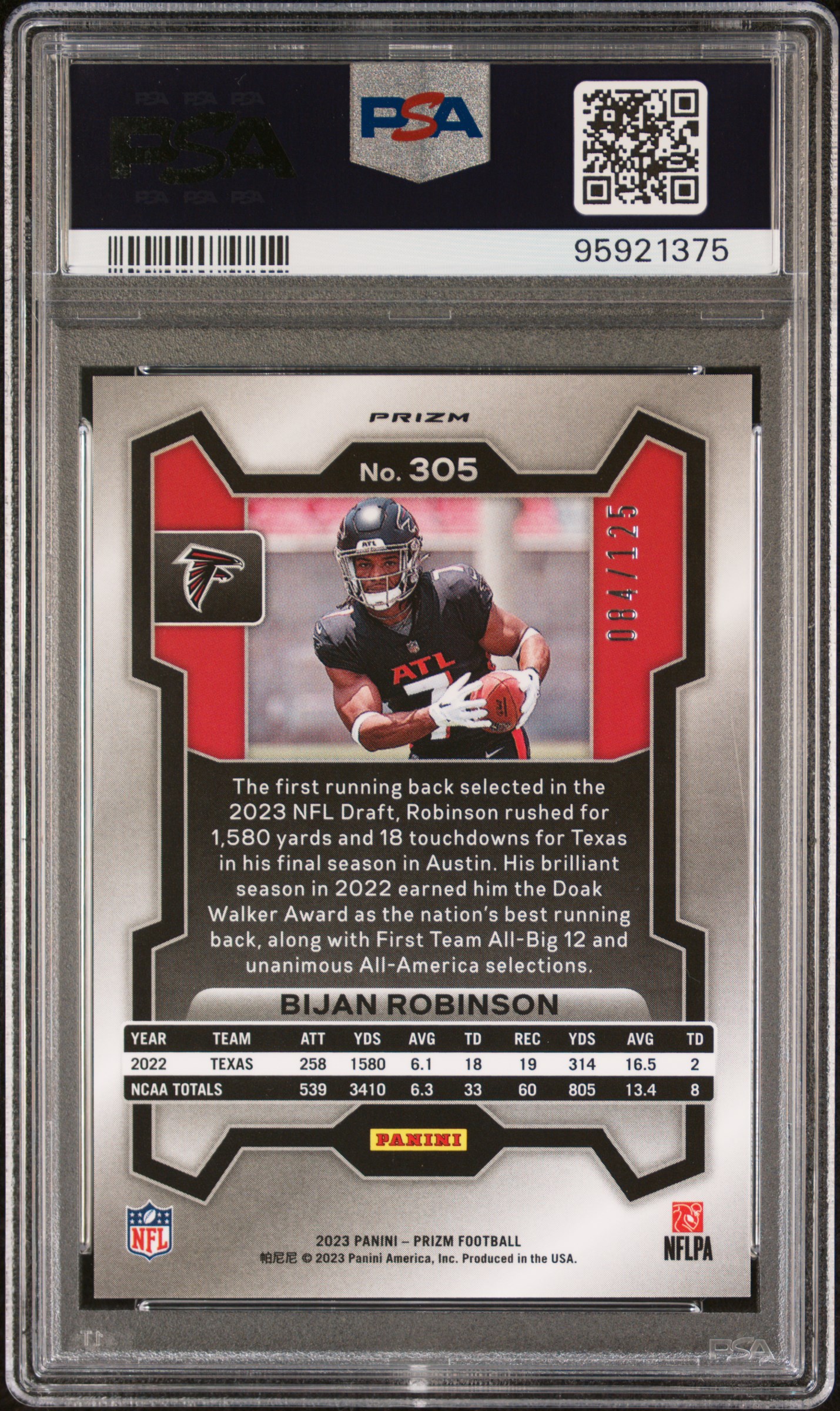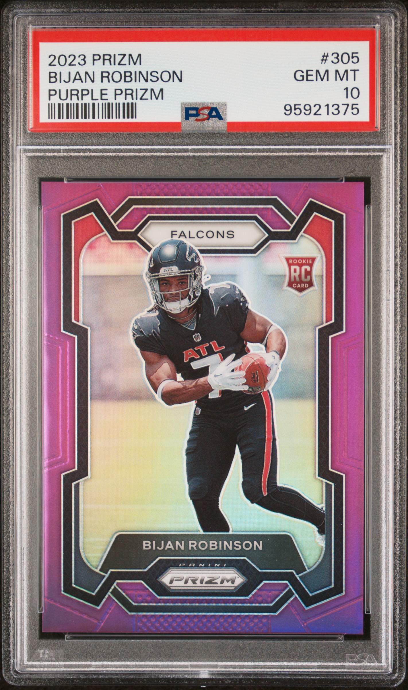 Bijan Robinson 2023 Prizm #305 Purple Prizm #084/125 RC (PSA 10)
