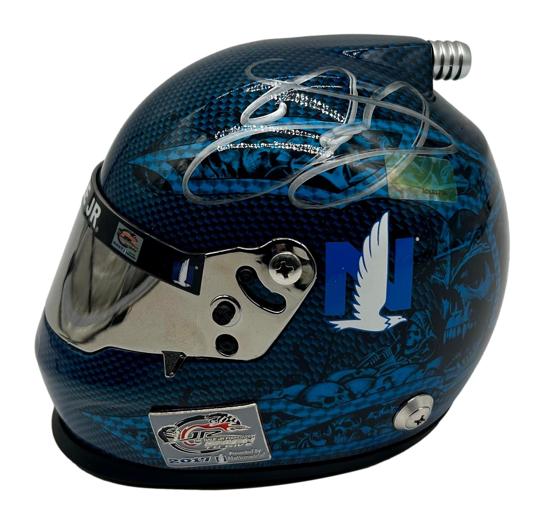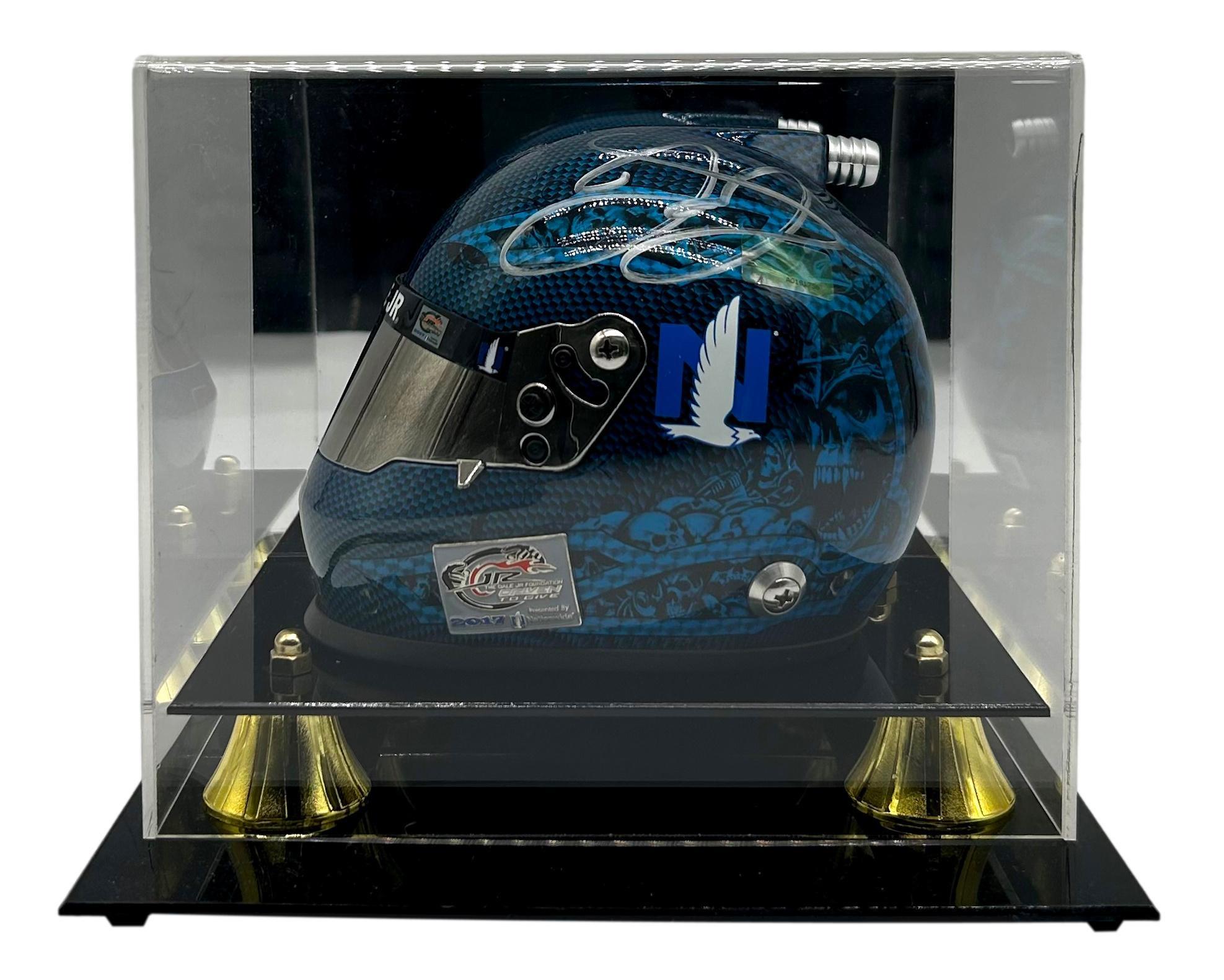 Mini helmet has been hand-signed by Dale Earnhardt Jr. (HOF). Display case is included as shown.