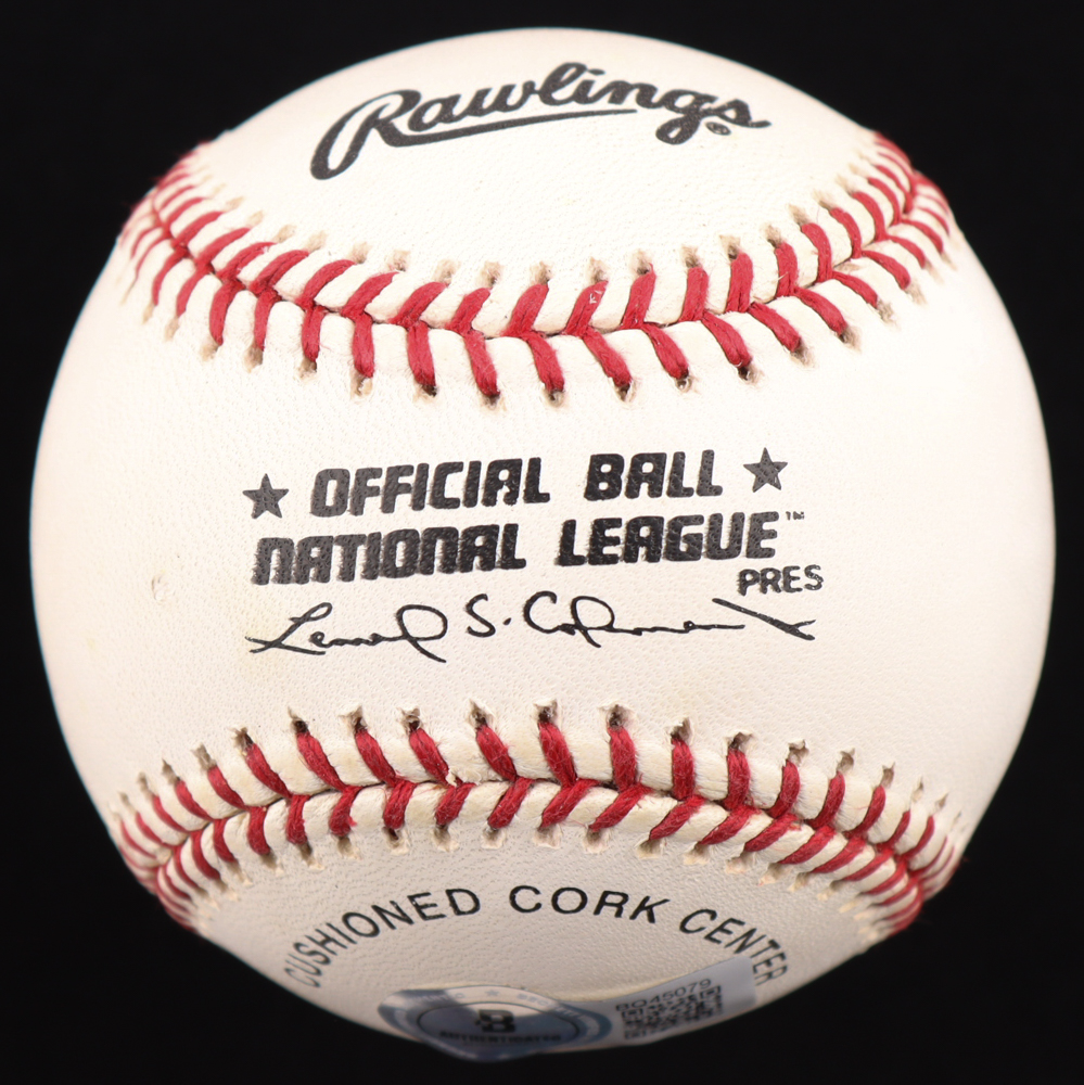 Rawlings Official National League baseball. Hand-signed and inscribed by Bobby Thomson (D. 2010, New York Giants).