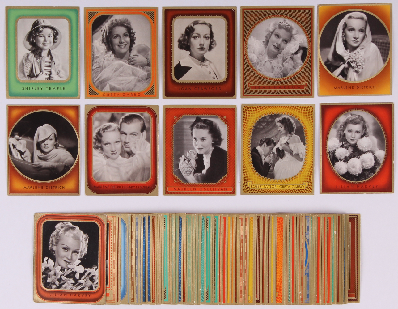 Lot of (80) 1937 Greiling "Filmbilder" German Cigarette Cards with Shirley Temple, Greta Garbow, Lilian Harvey