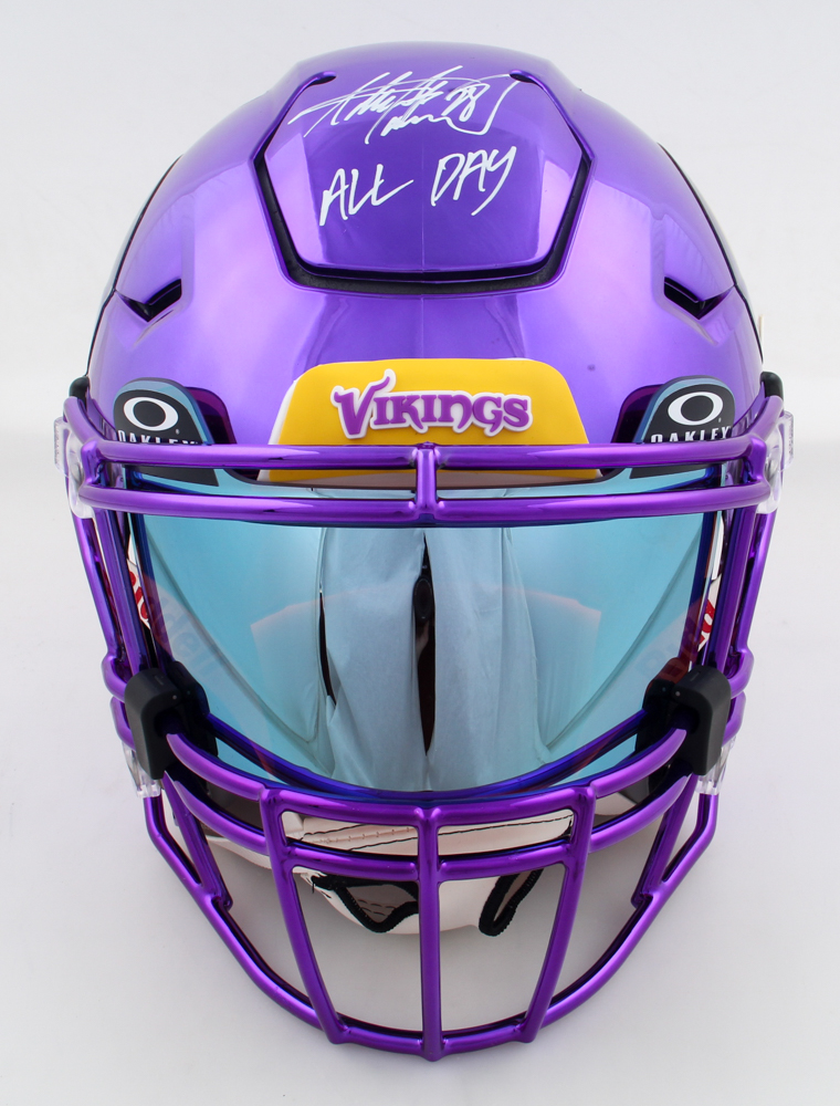 Adrian Peterson Signed Vikings Full-Size Authentic On-Field Chrome SpeedFlex Helmet With Visor Inscribed "All Day" (Beckett)