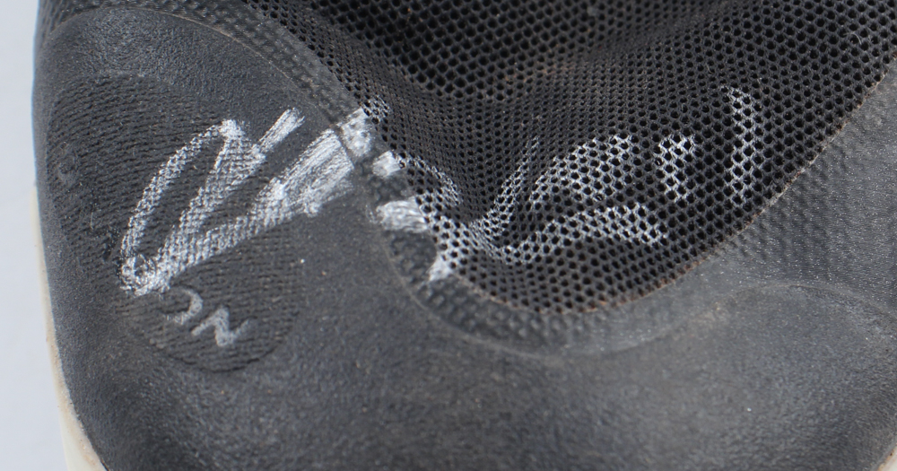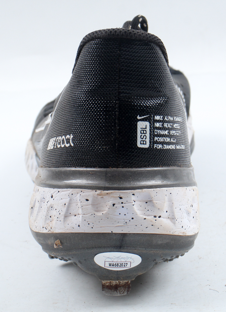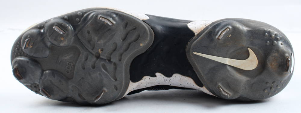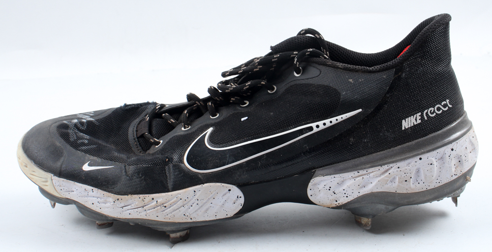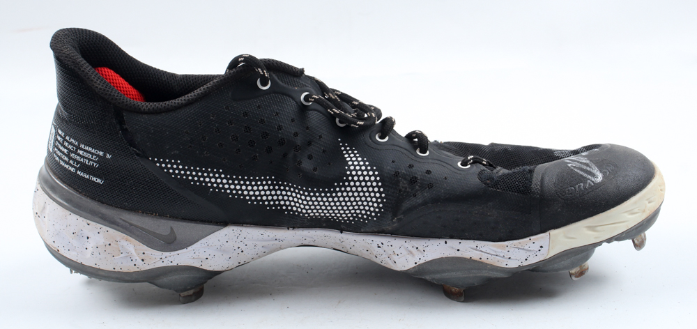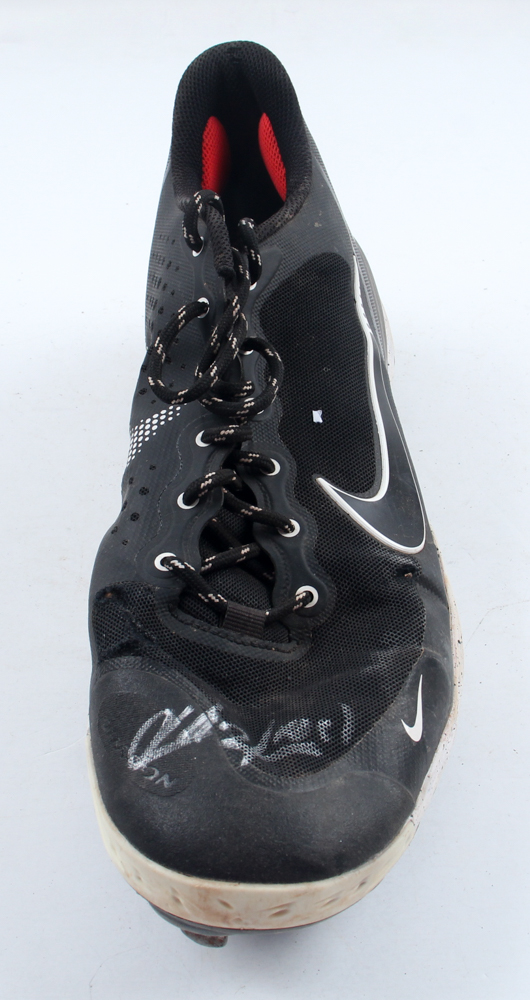 Nike baseball cleat, size 14. Hand-signed by Aroldis Chapman (New York Yankees). Cleat shows signs of wear. Please note, the cleat has been game-used by an unknown player.