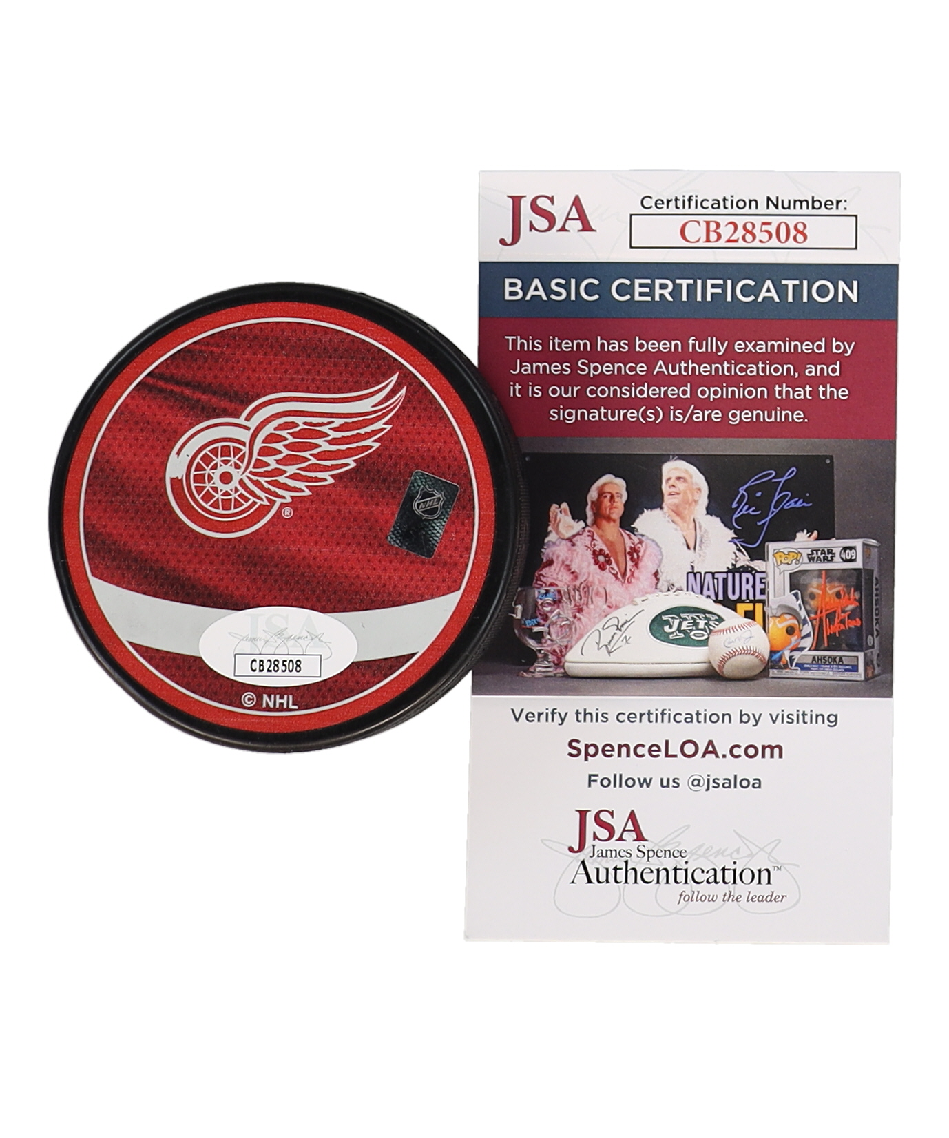 Lucas Raymond Signed Red Wings Logo Hockey Puck (JSA)