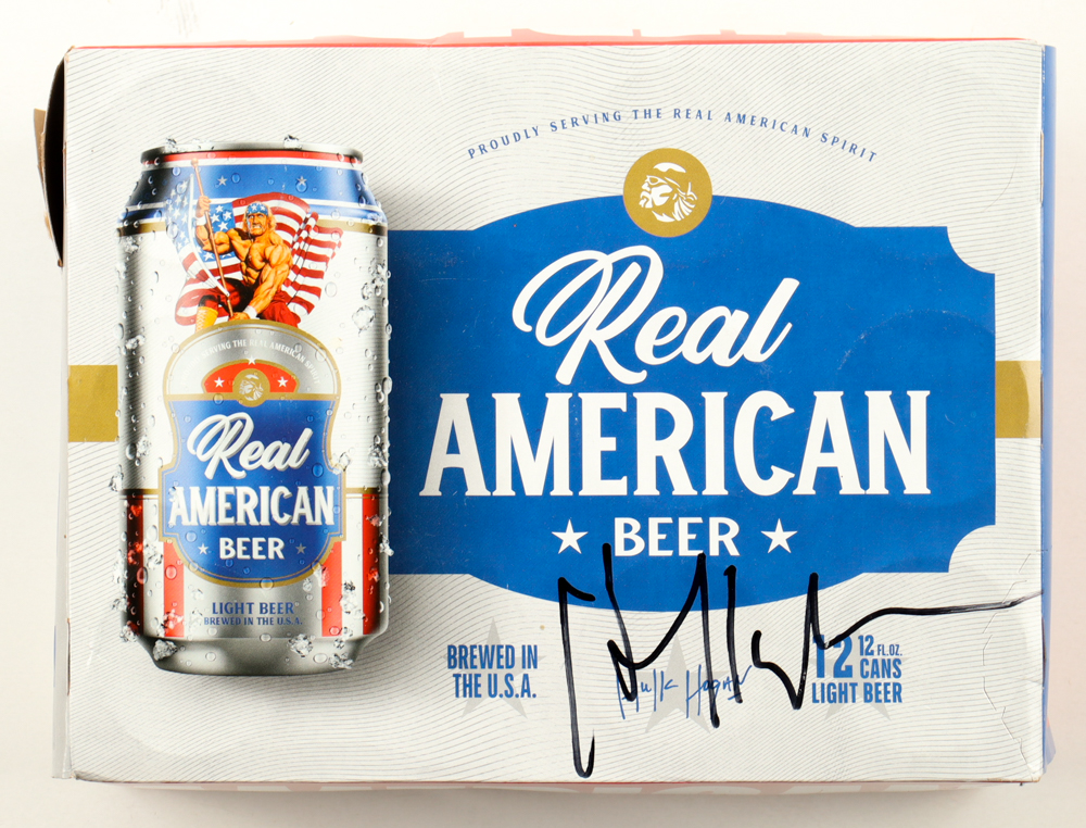 Real American Beer box measures 10" x 8" x 5" and has been hand-signed by Hulk Hogan (HOF). Please note box does not come with cans, see photos for more details on condition of the box.