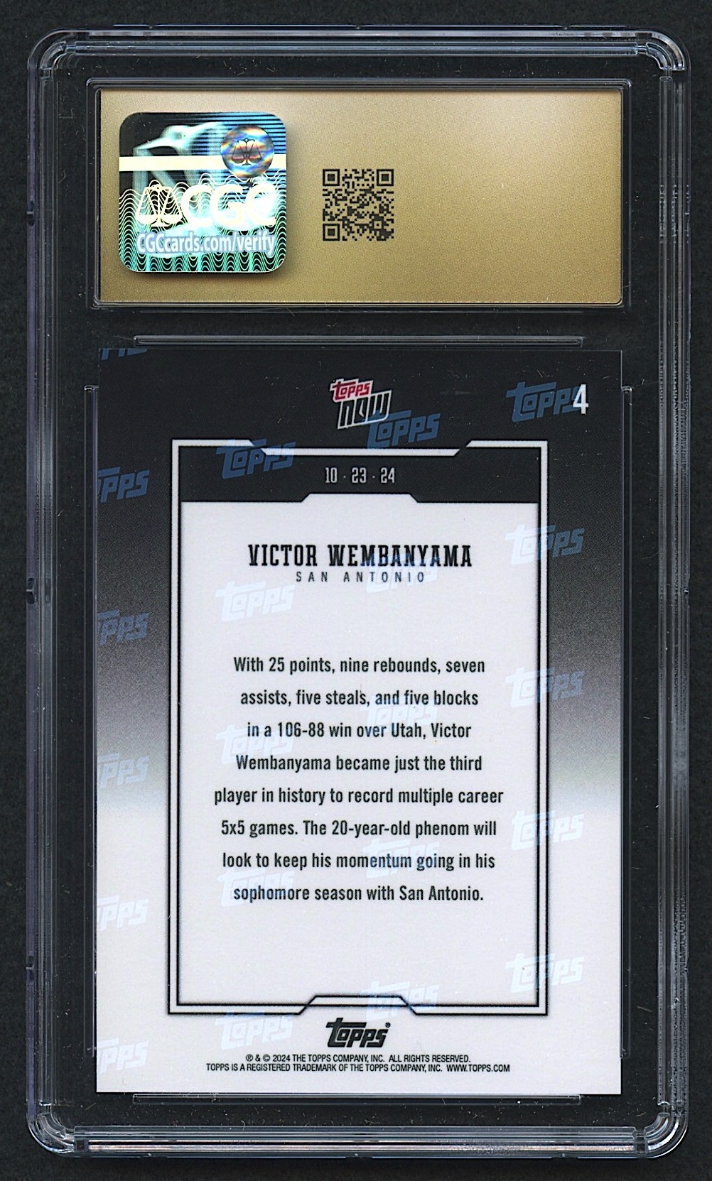 Victor Wembanyama 2024-25 Topps Now #4 (CGC 10 | Black Label)
