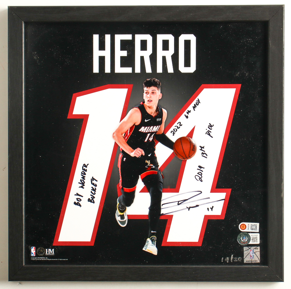 Tyler Herro Signed LE Heat Custom Framed Photo with Multiple Inscriptions (Beckett & Herro)