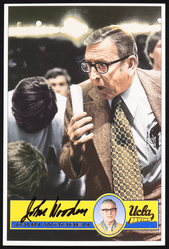 John Wooden Signed 4x6 UCLA Bruins Postcard (JSA)