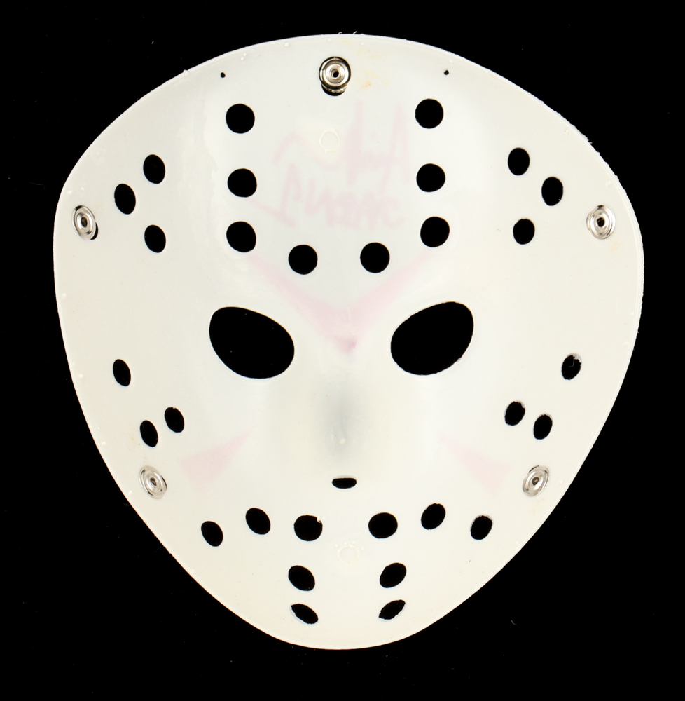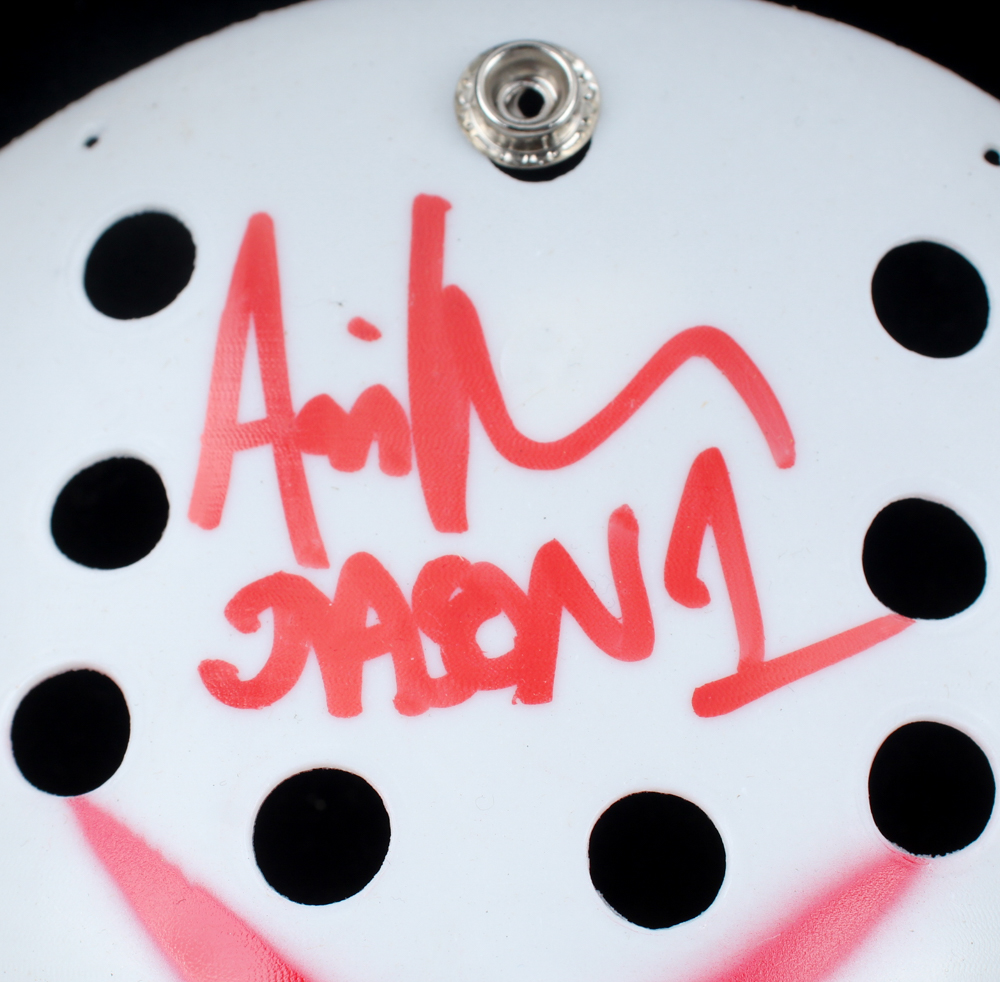 Custom "Friday the 13th" Jason Voorhees full-size replica mask. Hand-signed and inscribed by Ari Lehman (Jason Voorhees).