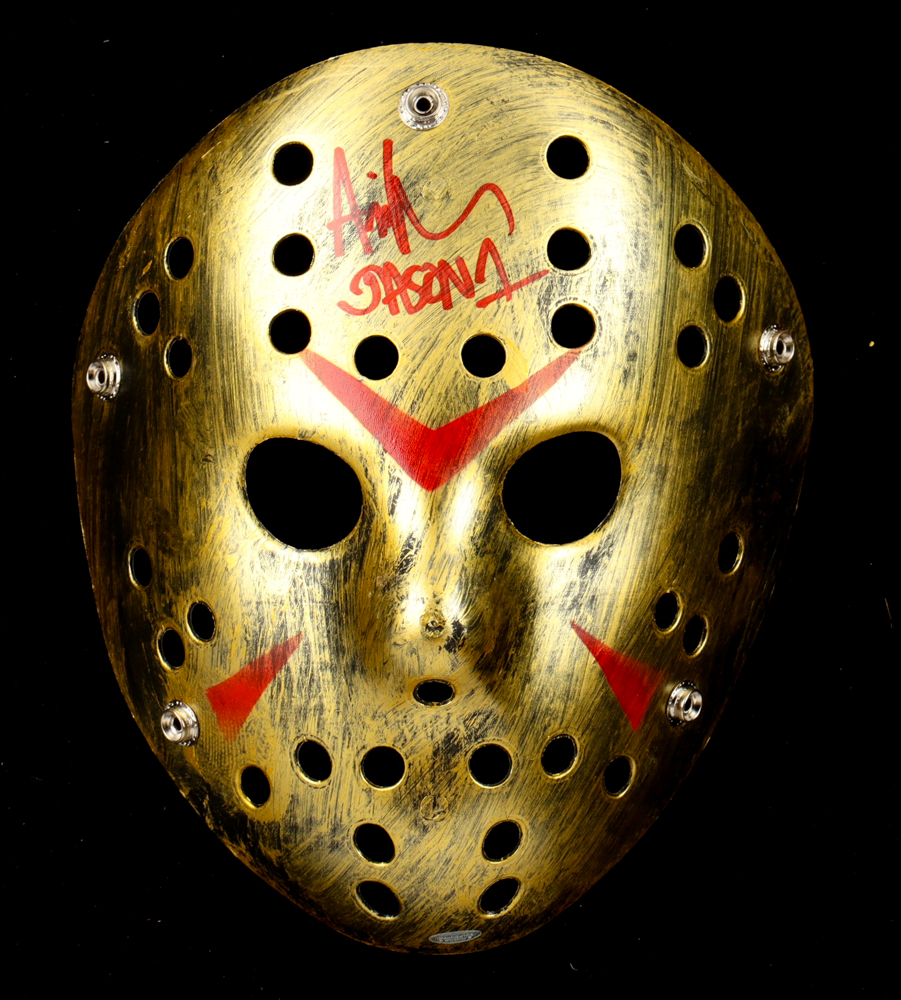 Custom "Friday the 13th" Jason Voorhees full-size replica mask. Hand-signed and inscribed by Ari Lehman (Jason Voorhees).