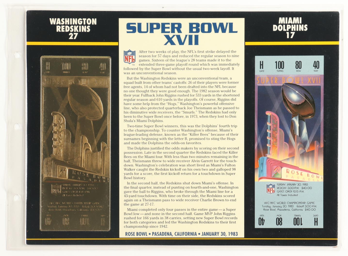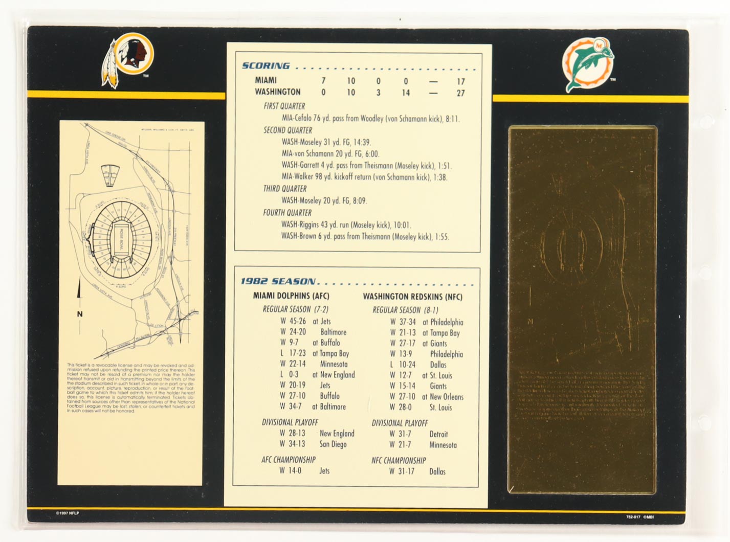 Super Bowl XVII Commemorative 9x12 Score Card Display with 22KT Gold Ticket