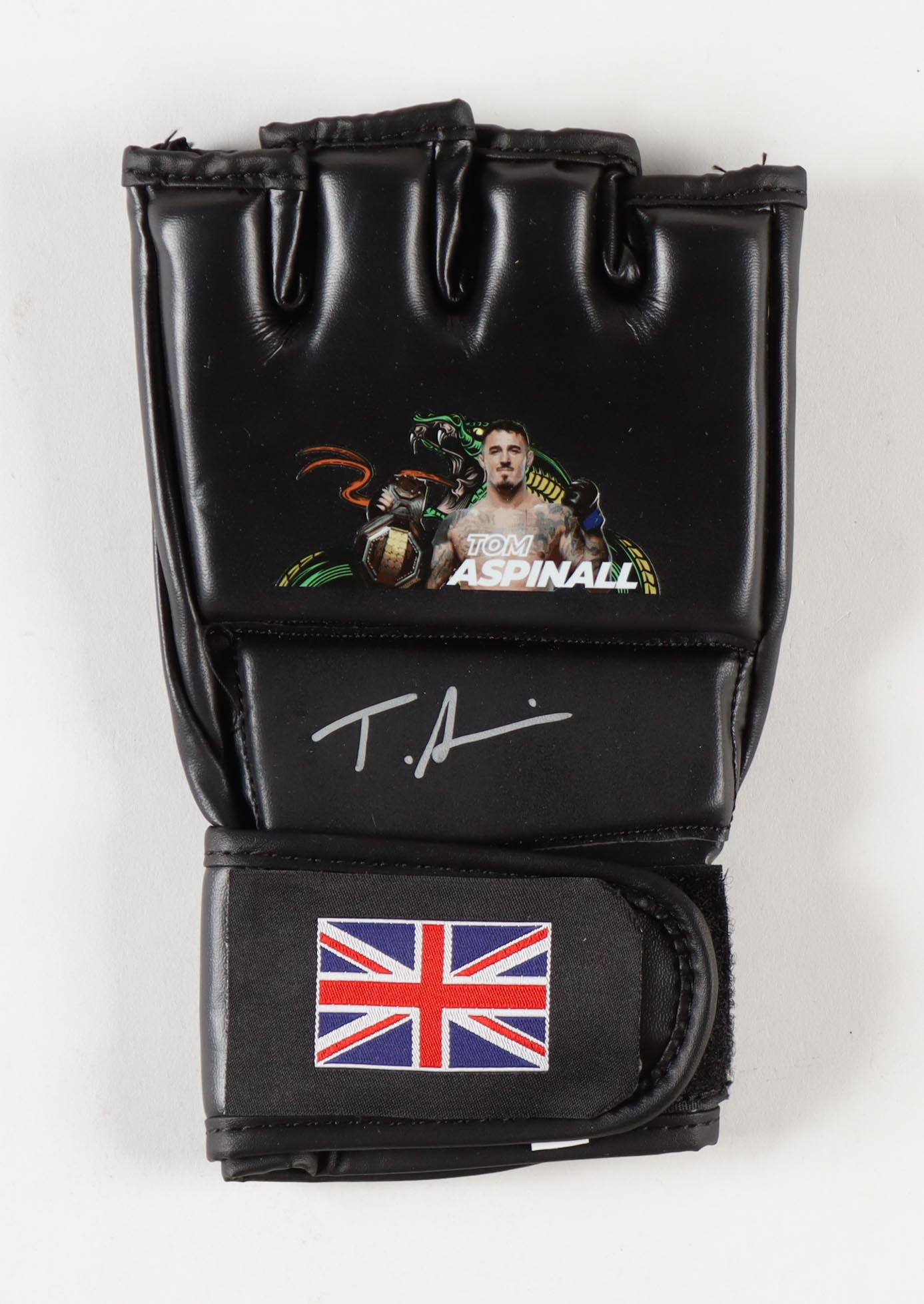 Custom left hand glove is hand-signed by Tom Aspinall.