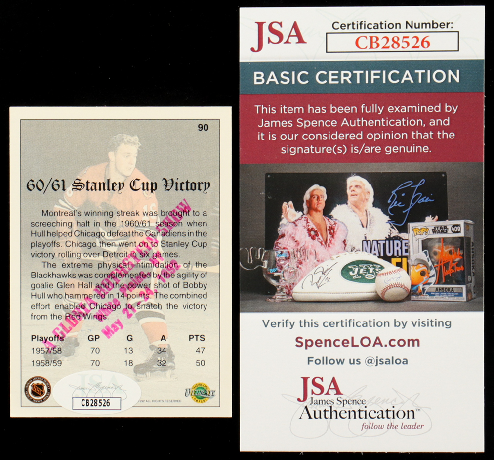 Bobby Hull Signed 1992 Ultimate #90 (JSA)
