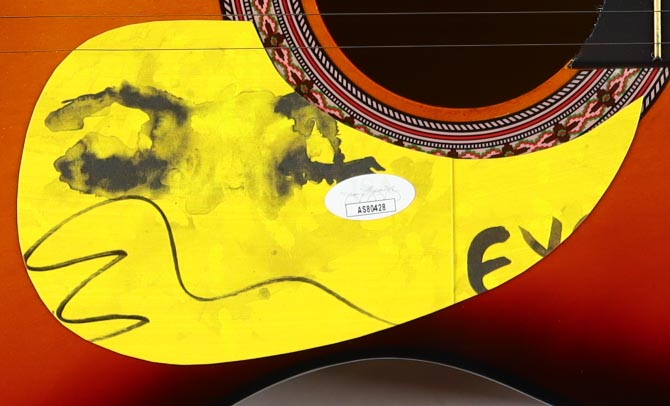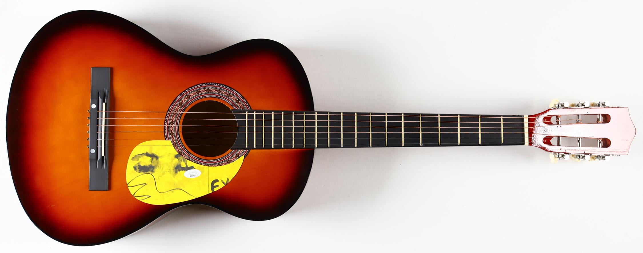 Guitar measures approximately 38" in length. Hand-signed on a CD cover that has been repurposed as a pick-guard by Ed Sheeran.