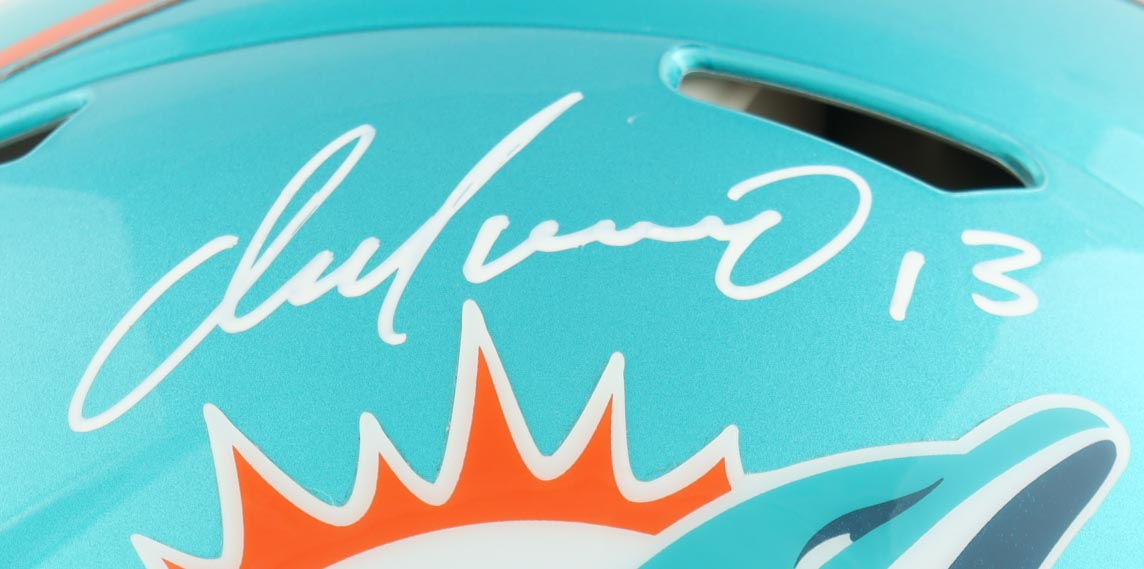 Riddell Miami Dolphins full-size authentic on-field flash alternate speed Helmet. Hand-signed by Dan Marino (HOF).