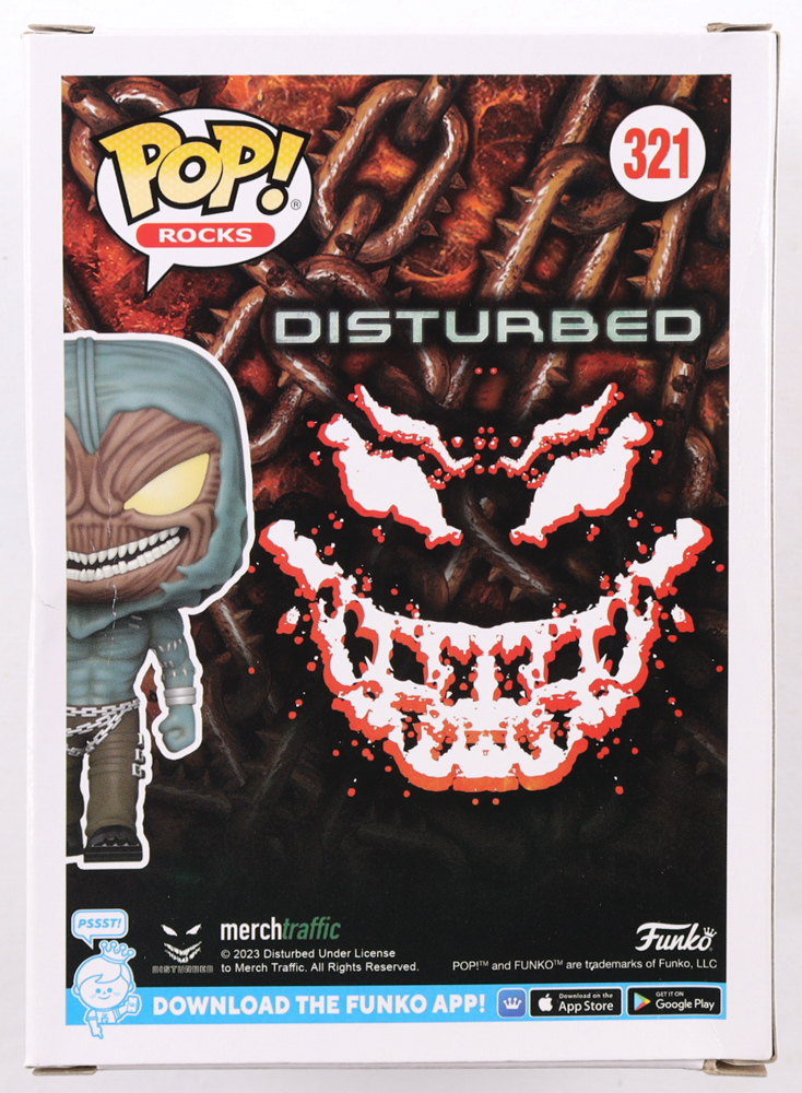 Vinyl figure measures approximately 4" tall in size and has been hand-signed by David Draiman. Please note, item has been window swapped, there is a tear on the back of the lid and creases throughout the back of the packaging.