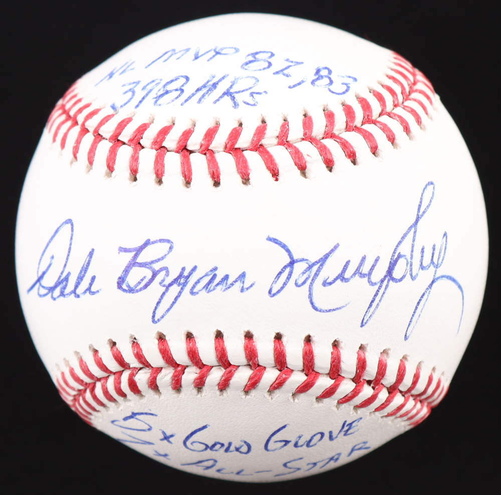 Rawlings Official Major League baseball. Hand-signed and inscribed by Dale Murphy (Atlanta Braves).